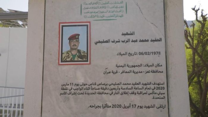 وخلال تسليم المبنى إلى السلطة المحلية من قِبل مدير مكتب البعثة الأممية في الساحل الغربي سلوى توفيق.. قال العميد نجيب ورق، عضو المكتب السياسي للمقاومة الوطنية- عضو الفريق الحكومي في لجنة إعادة الانتشار؛ إن نائب رئيس مجلس القيادة الرئاسي- قائد المقاومة الوطنية الفريق الركن طارق صالح، أصر على إنشاء مشروع خدمي في مسقط رأس الشهيد الصليحي كأقل واجب لتخليد ذكرى هذا البطل الذي استشهد بقناصة مليشيا الحوثي الإرهابية أثناء تأدية مهامه كعضو في لجان الارتباط المشكلة من البعثة الأممية لدعم اتفاق الحديدة.