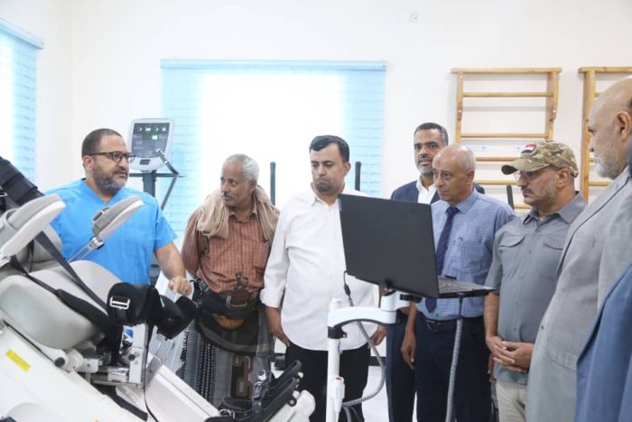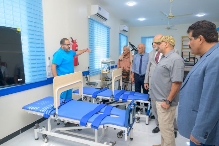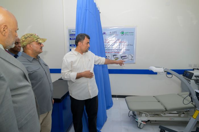 واستمع نائب رئيس مجلس القيادة إلى شرح من القائمين على المركز ومدير دائرة الخدمات الطبية في المقاومة الوطنية الدكتور طارق العزاني، عن الوحدات المتخصصة في العظام والأعصاب والروماتيزم، وتأهيل ما بعد الجلطات وإصابات النخاع الشوكي وتغيير المفاصل، إضافة إلى وحدات خاصة لتأهيل إصابات الملاعب وعلاج الأطفال ذوي الاحتياجات الخاصة.