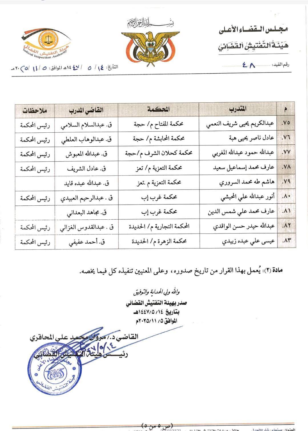 وأكدت المصادر أن هذا التوزيع يمثل تجاوزاً صريحاً لقانون السلطة القضائية، مشيرة إلى أن أغلب الأسماء الواردة في الكشوفات تنتمي للسلالة الحوثية، وقد خضعت لدورات فكرية لا تتجاوز ثلاثة أشهر، أشرف عليها "خطباء ثقافيون" تابعون للمليشيا داخل المساجد، دون استيفاء أي من شروط التعيين القانونية.