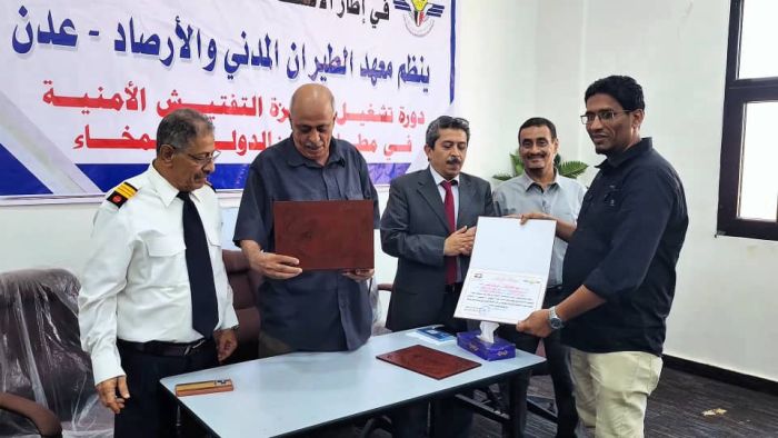 - صور| اختتام دورة في التفتيش الأمني لكوادر مطار المخا الدولي بدعم طارق صالح وإشراف وزارة النقل